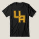 The The University at Albany initials logo features a bold and dynamic "UA" design, rendered in the university's signature purple and outlined with a striking gold border. The angular, block-like letters give the logo a strong and authoritative appearance, perfect for representing school pride and identity. The symmetrical and geometric structure of the letters conveys a modern and professional aesthetic.