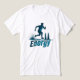 Minimal 2-colour vector design of a sprinter bursting from the starting blocks, paired with bold italic text “Unleash Your Energy” in electric cyan and black, optimised for printing on white fabric. Perfect for sportswear, motivation, and athletic apparel.