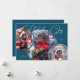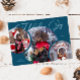 Minimal and modern holiday photo template card featuring 3 photos of your pup on the front with a script font on the top that says "Unleashing Joy." You can also add another picture and message on the back. The background is teal.