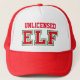 Funny "Unlicensed ELF" cap with Christmas red & green letters