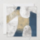 A large abstract shape in navy blue covers the canvas edge to edge with cutouts revealing a textured white background. A worn, textured beige area sits over the blue shape while white lines twist like rope in a dynamic finish to the piece.