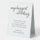 This elegant unplugged wedding tent sign features a black and white minimalist style with a mixture of handwriting and simple block fonts. It will be perfect for placing on tables and asking your wedding guests to allow you to have a private wedding free from social media. Part of the Alejandra collection.