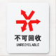 Unrecyclable / Not to be recycled - Chinese Language Hanzi Sign.