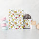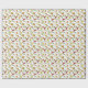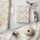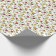 Unrolled and flat sheets of floral wrapping paper with a colorful pattern of red, yellow, and green leaves on a white background.