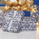 This wrapping paper roll features Unruffled for its art design--Unruffled is a gathering of fine feathered birds layed out in a symmetrical style, the colour palette sees plenty of soft grey, pencil leaded feathers, and some lovely "soft blues" underlaying shaped shades. Without dominating the Unruffled theme we see a navy blue introduced to the birds breast. The overall effect is a cool and harmonious grouping of our fine feathered friends.