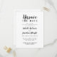 Gosh! We live in fascinating times! Don't stress when things go sideways. It's time to pivot! You'll need some space to gather yourself, adapt and find fresh ways to reschedule and maybe even reinvent your special day. We've got you! These timeless black and white event postponement cards comprise a fixed text message in a chic script typeface with modern sans serif block font for your message. Suitable for any occasion that you need to delay or reschedule. Let your guests know that you are needing to postpone the event without losing your poise with this classic design. Don't be disheartened. You now have time to make your new celebration even more the way you have always longed for it to be!