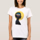 This T-shirt features a striking design of a woman's silhouette filled with a vibrant sunset scene, complete with palm trees and a tranquil ocean view. The silhouette is set against a bold yellow circular background, creating a visually appealing contrast. Made from soft, high-quality cotton, this shirt offers a comfortable fit and is perfect for casual wear. Available in multiple sizes, this T-shirt is a great choice for those who appreciate unique, artistic designs.