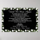 An elegant funeral memorial celebration of life sign with White Flowers and a poem.