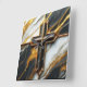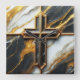 Unveiled Black and White Marble Cross With Gold Square Wall Clock