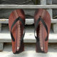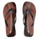 These flip flops, inspired by rich brown leather and an unzipped brass zipper, has the look of fine leather including piping and stitching.