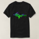 UP Aurora Hunter T-shirt with northern lights aurora borealis design and UP land mass with text that reads Aurora Hunter in black.