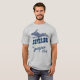 A grunge style graphic design of a Michigan Upper Peninsula map with the text "Once a yooper-always a yooper" by artist/designer Charmaine Paulson on a mens t-shirt.