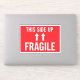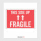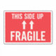 A clear and essential "UP THIS SIDE FRAGILE" shipping label design, featuring prominent white text and two upward arrows on a bold red background. This design is perfect for ensuring proper handling and orientation of delicate packages during shipping. Ideal for businesses and individuals who need to clearly indicate the correct way to store and transport fragile items, minimising the risk of damage