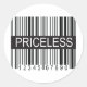 A typical black and white upc code, with a broad band of black displaying the word, "PRICELESS".