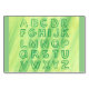 The upper case letters of the American alphabet is printed in green outline letters on a blended green and yellow background. Arrows are drawn on the letters to illustrate how to draw each letter. These cards are suitable to children to adult literacy learners. Thank you for shopping at CustomFlashCards on Zazzle.