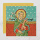 In this detail of a 19th-century Belgian devotional print, a mature, grey-haired St. Joseph stands in front of a red wall hanging with golden yellow trim. The tapestry is patterned with equal-armed crosses enclosed in rotated squares. How it is hung defies logical explanation because the background consists of an infinitely deep aqua-blue sky bespattered with stars. + St. Joseph is richly garbed in strong colours. His robe is red; his mantle, green with a dark aqua lining and golden yellow borders. He holds a spray of white lilies symbolising purity in his right hand and an L-shaped brown wooden carpenter’s rule indicative of his profession in his left. Beneath St. Joseph’s sandaled feet in the full-length image that appears, for example, on our greeting cards and posters in this COLLECTION are additional attributes--a small dragon, a crown, a scroll, and a globe inscribed with the names of the populated continents—that speak to his role as protector of The Church. + This chromo- or colour lithograph was originally published to promulgate Pope Leo XIII’s “Prayer to St. Joseph” of 1889. + Principal Feast of St. Joseph: March 19; Feast of St. Joseph the Worker: May 1 + Image Credit (VVP 09): Detail from an antique chromolithograph of Saint Joseph, Protector of the Church, Pray For Us [H. Jozef, beschermer der H. Kerk, B.V.O.] originally published by K[arel] v[an] d[er] Vyvere-Petyt, Bruges, Belgium, c. 1890, from the designer’s private collection of religious ephemera.