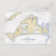 The design combines classic, traditional styling with modern design elements. Colours in traditional shades of navy and steel blues are paired with classic block and modern script typography. The background and reverse side feature the official NOAA nautical chart for Martha's Vineyard Massachusetts. It's an upscale, yet adventurous, modern, yet traditional, elegant, yet upscale design.