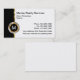 Take this upscale real estate business card online template designed with a silver, gold, and black monogram emblem you can replace with the first letter of you or your company name. You also have the option to remove the name letter and add your own logo inside the emblem.