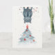 A whimsical Christmas card illustrated in the soft, nostalgic Tradition Treasures style. It features a mischievous blue-grey kitten hanging upside down in a string of festive lights, right above a beautifully decorated winter tree. The gentle watercolour textures and cool winter tones give the card a magical snowy feeling. Perfect for cat lovers and anyone who enjoys a fun and heartwarming Christmas design.