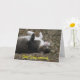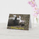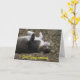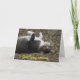 This card says, "Quit lying around...move your tail and start feeling better!" This get well card shows a photograph of an adorable gray-striped cat lying on a hill upside down with his little white paws in the air. With an irresistible face, beautiful green eyes, white paws, and freckle on his pink nose, this card is sure to help everyone feel better sooner.