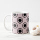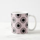 Funky and trendy Uptown Hipster patterned mug in delicate soft pink. This fun patterned mug is a stylish way in which to sip your favourite morning beverage. Customise this design by adding text of your own choosing. Original pattern created by Superstarbing Designs.