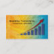 Bright bold yet elegant financial advisor business card. This card will get their attention with a bold background from yellow to blue. In the right side is a graph of blue columns and a red arrow sweeping upward. The back of the card has the same background but more subtle.