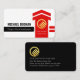 Overleaf, the color black from your job title at the front is brought to the back. Card details are over on the left with the gold logo at the top. This is followed by your prestigious name and the contact details.