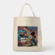 The printing came out very well, better than I had anticipated. The natural color fabric is sturdy with strong seams and comfortable handles. This tote fits easily over my shoulder. As it is filled, the bottom flattens out--very cool! I would buy this product again. This grocery tote holds a lot of groceries! The image quality was very good. The colors were a little darker than I had expected. The darkness may have been due to printing on a natural color fabric rather than on white. The cat design is attractively centered on the tote. The spirit of the design is very lively, just as it appears on the Zazzle website.