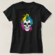 This graffiti-inspired street art design features a white skull with a bright green mohawk. Bright yellow, blue, and pink paint-like splotches form the background. Great for skull or horror lovers and those who enjoy the goth or punk aesthetic.