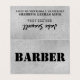 Modern, urban, minimalist, hipster... "BARBER" in stencil style bold black font on grey textured background. Use back for stylist's / barbershop details. Inside can be used for price list, loyalty stamps etc.