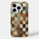 Protect your phone with a touch of raw, urban art. This design features a unique abstract chequerboard pattern with heavy grunge textures, including simulated rust, splatters, and fine scratches. The moody blend of earthy copper, muted teal, and deep charcoal creates a sophisticated vintage aesthetic for those who love industrial and weathered styles.