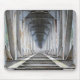 Heavy metal steel beams and girders combine with extreme structural engineering in this bridge foundation. Colour photo captures the cold and hard steel surfaces in shades of grey, and the interesting perspective gives the illusion of entering a tunnel or chute.