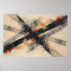 Dynamic abstract art with diagonal black and gray stripes over a cream background. Vibrant touches of orange and red plus ink splatters create movement and energy. Ideal for decorating modern spaces seeking boldness, artistic expression, and an urban, contemporary look.