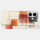 Sharp-edged squares and rectangles form a layered, almost architectural grid in red and black tones, creating a bold, urban abstract design.