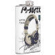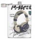 A bold graffiti-style illustration of vintage over-ear headphones, featuring cream and deep navy colors with sketchy handwritten doodles and expressive street-art typography. The artwork blends a retro music aesthetic with an urban creative vibe, giving it a modern artistic look inspired by street culture and freestyle design elements.