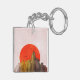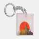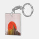 Urban Skyline with Red Sun Grunge Cityscape Key Ring