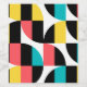 Abstract background pattern made with geometric shapes (circular and rectangular) in yellow, blue, red and black colours. Modern, simple, playful and vibrant vector art.