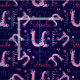 Modern decorative hand drawn graphic monogram initial letter U and name repeat patterned fabric. Doodle art monogrammed letter U hand drawn design with flowers and hearts. Customise with your own letter U name choice (please note not all names will fit due to the nature of the font) currently reads Ursula other name lengths are available, if you need assistance contact me, I am happy to post one for your name. Fabric in shades of pink and purple on a navy dark blue background which can be changed if required. A great way to personalise your sewing and quilting projects. Ideal for a girls personalised named sewing projects. Original art and design by Sarah Trett for www.mylittleeden.com