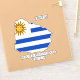 Uruguay Flag Map Sticker in the outline of the Uruguay map. The map is infused with the pattern and the colours from the Uruguay national flag. Small stickers with the country name are also included. Text is fully customisable using "Customise it!" feature. Uruguay map sticker is the perfect sticky gift that can be placed anywhere your heart desire. © 2021 CoutriesOfTheWorld