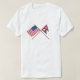 The gently waving flags of the United States and your "other" favourite place on crossed poles are an excellent way to display your affections or affiliations. Whether your current or ancestral home, someplace you have visited or would like to visit, or just because you like that flag, this shirt is for you! Great for clubs and organisations, special events, or just because!