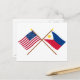 The gently waving flags of the United States and your "other" favourite place on crossed poles are an excellent way to display your affections or affiliations. Whether your current or ancestral home, someplace you have visited or would like to visit, or just because you like that flag, this postcard is for you!