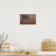 Share a little American history on this rectangular print with the text of the Preamble to the Constitution of the United States against a background of an unfurled United Stated flag on the grain of cracked stained cedar wood.