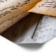 Copies of the Declaration of Independence and US Constitution in rolled up scrolls with a vintage American flag