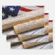 Copies of the Declaration of Independence and US Constitution in rolled up scrolls with a vintage American flag