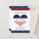 A lovely military themed postcard to send to your guests to save the date of your wedding. This card features an American heart flag with stars and stripes, in colours of red, white and blue. The top of the postcard reads 'Military Wedding'. The bottom reads 'Save the Date' and a template area right under that to add your special date. The middle of the heart has an area ready for you to add the names of the bride and groom. The font is an elegant navy blue script. The backside of the postcards has a lovely note message, and a closure area to sign bride and grooms names. Simply address them and add a stamp and your military themed postcards are ready to go! For more military themed save the dates, invitations, response cards, stamps, and many more party accessories please visit our store!