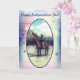 This greeting card features a photograph edited into sketch art of a cowboy mounted on a horse holding an American flag. Fill in the template text for the cover and inside greetings, remove the text, or click customise to select a font style, size, and colour you like. Original cover photo ©Patricia AZ Phillips