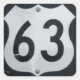 Photograph of a US Highway 63 road sign printed to edge of stickers.