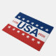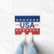 Celebrating the USA's 250th anniversary. This red, white, and blue doormat has the word 'USA' in the centre. The years 1776 and 2026 are next to USA. The top stripe is blue and has white stars. The centre stripe is white. The bottom stripe is red with white stars.