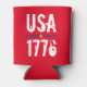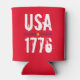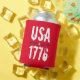 USA and 1776 in a unique font is printed in white on this red can cooler and highlighted with blue and red stripes and a gold star. MATCHING items in our store.