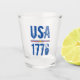 USA and 1776 in a unique font is printed in blue on this shot glass and is highlighted with red and blue stripes and a gold star. MATCHING items in our store.
